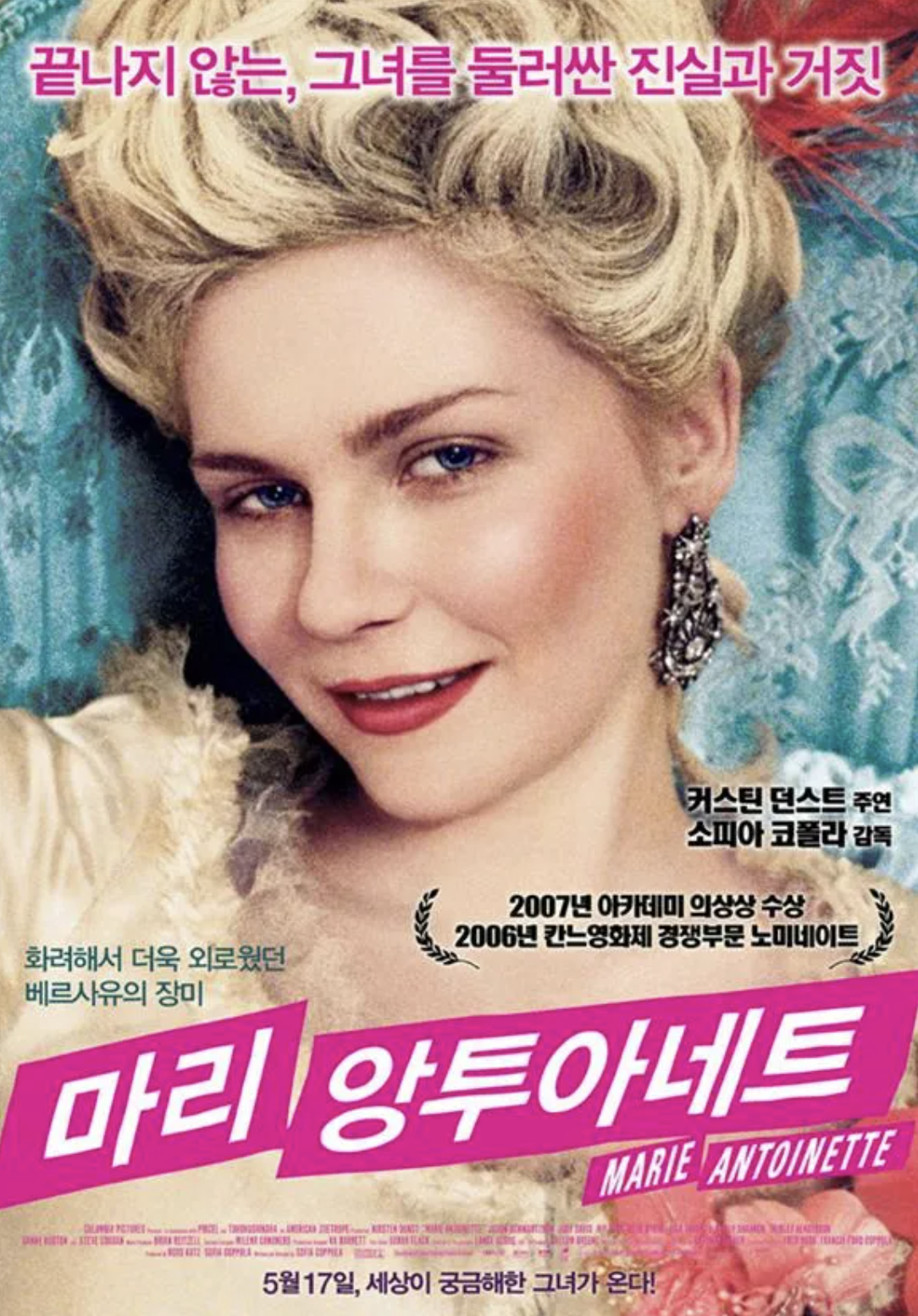 마리 앙투아네트는 화려한 색채, 디저트, 의상, 록 음악을 활용해 감각적으로 역사영화를 재해석합니다. 이 영화의 아름다움은 역사적 사실의 재현보다 마리 앙투아네트가 느꼈을 감정과 욕망을 시각적으로 번역한 세계에 있습니다. 그렇기에 영화 속 과감한 사운드트랙과 과장된 색채, 빠른 편집 리듬은 화려하지만 동시에 공허함을 드러내며, 시각적 풍요 속 고립을 강조합니다. 영화는 아름다움을 통해 감정의 모순을 표현하며 현대적 감각의 미학을 구축합니다.